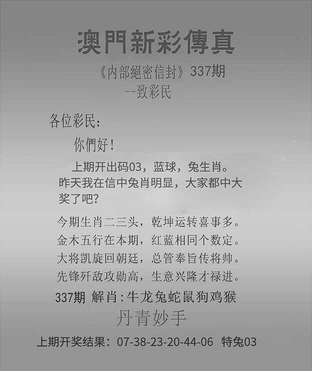 337期:必中㈧码: 23 02 04 49 21 43 03 44