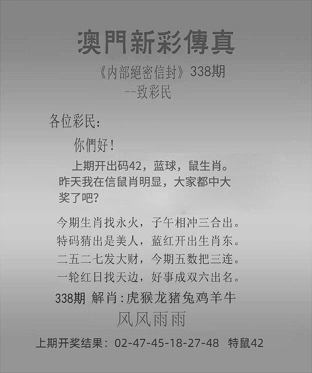 338期:必中㈧码: 32 02 36 35 34 41 25 30